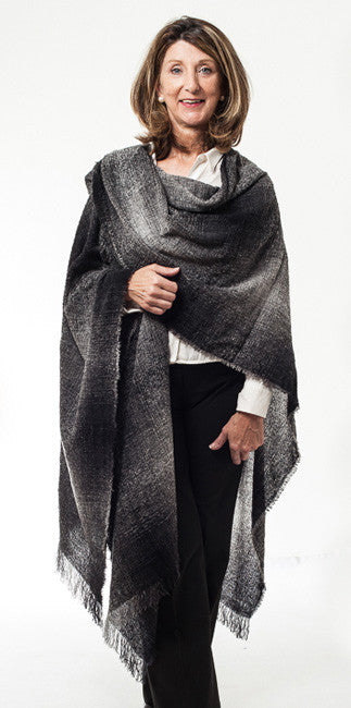 Made from a blend of 85% superfine lambswool and 15% nylon, this ruana — a poncho-like outer woolen garment — is crafted in Ireland with a focus on softness and quality.