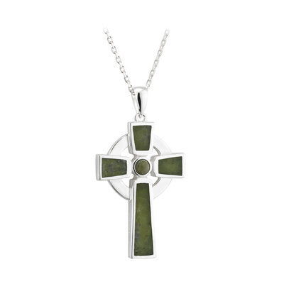 This sterling silver marble cross pendant has been created in Connemara marble, a unique stone dating back over 900 million years and known as “Ireland’s gemstone”. All of our Connemara marble is authentic, coming from a family mine in Connemara itself. The Celtic Cross is a powerful symbol of faith, dating back to the ninth century.