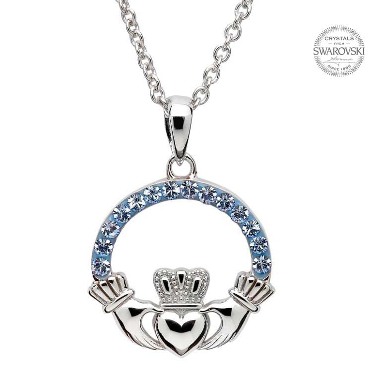 SW4 Light Sapphire Claddagh Necklace Embellished with Swarovski Crystals by Shanore