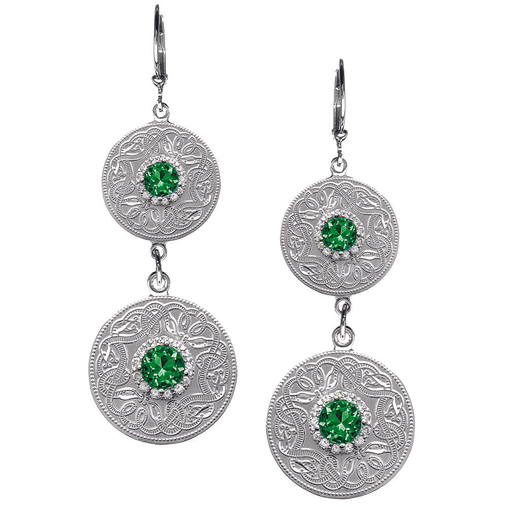 Celtic Warrior Style Double Earrings with Emerald and Clear CZ Stones
