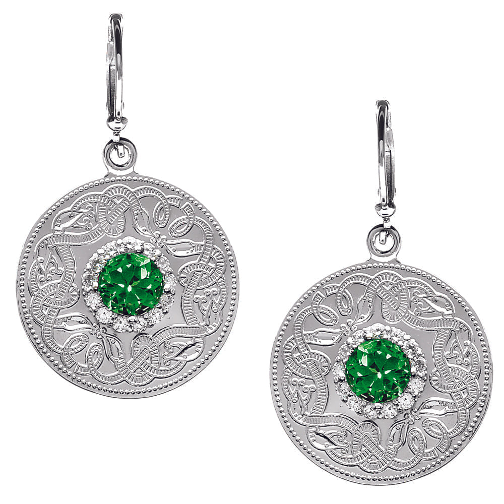 Celtic Warrior Style Earrings with Emerald and Clear CZ Stones