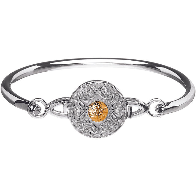 The contrast of the Sterling Silver and the 18K Gold are quite stunning together on this bangle.