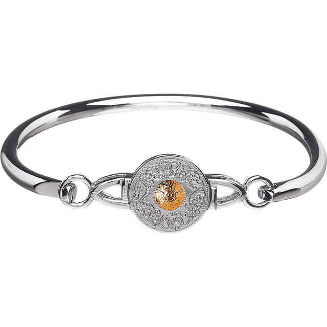 The contrast of the Sterling Silver and the 18K Gold are quite stunning together on this bangle.