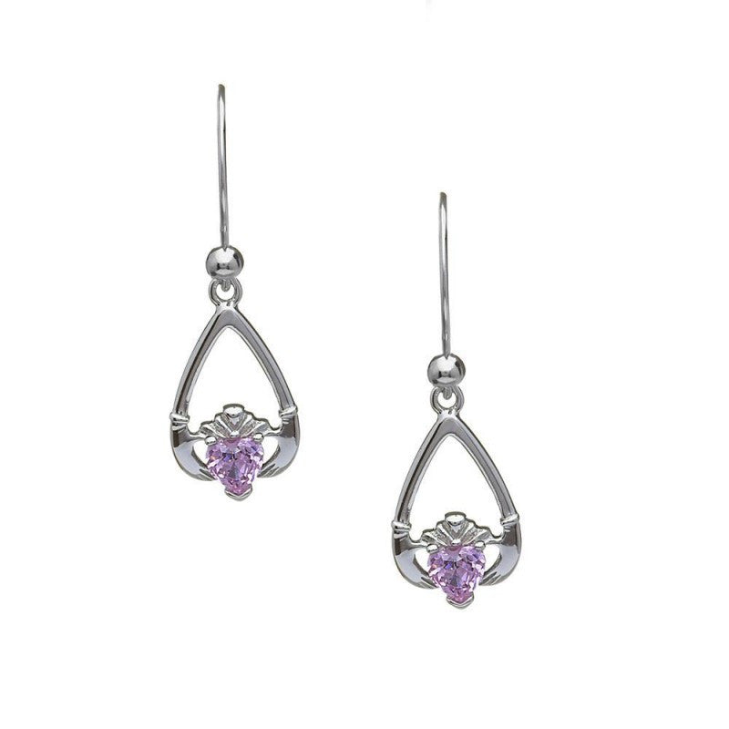 - Drop style earrings with birthstone gem filling the Claddagh's heart