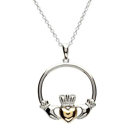 SP1081 Claddagh Sterling Silver Gold Plate Heart Necklace by Shanore