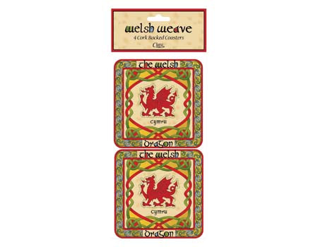 This Set of 4 coasters depict the famous Welsh Dragon. The dragon was chosen as a symbol of Wales in the time of Henry VII (15th century). This was done in tribute to the Welsh people who had made his victory possible, as he fought the Tudor claim to be the true Rulers of Britain.