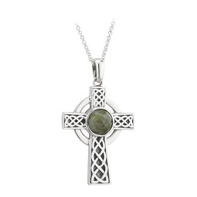 Silver Connemara Marble Celtic Cross Necklace