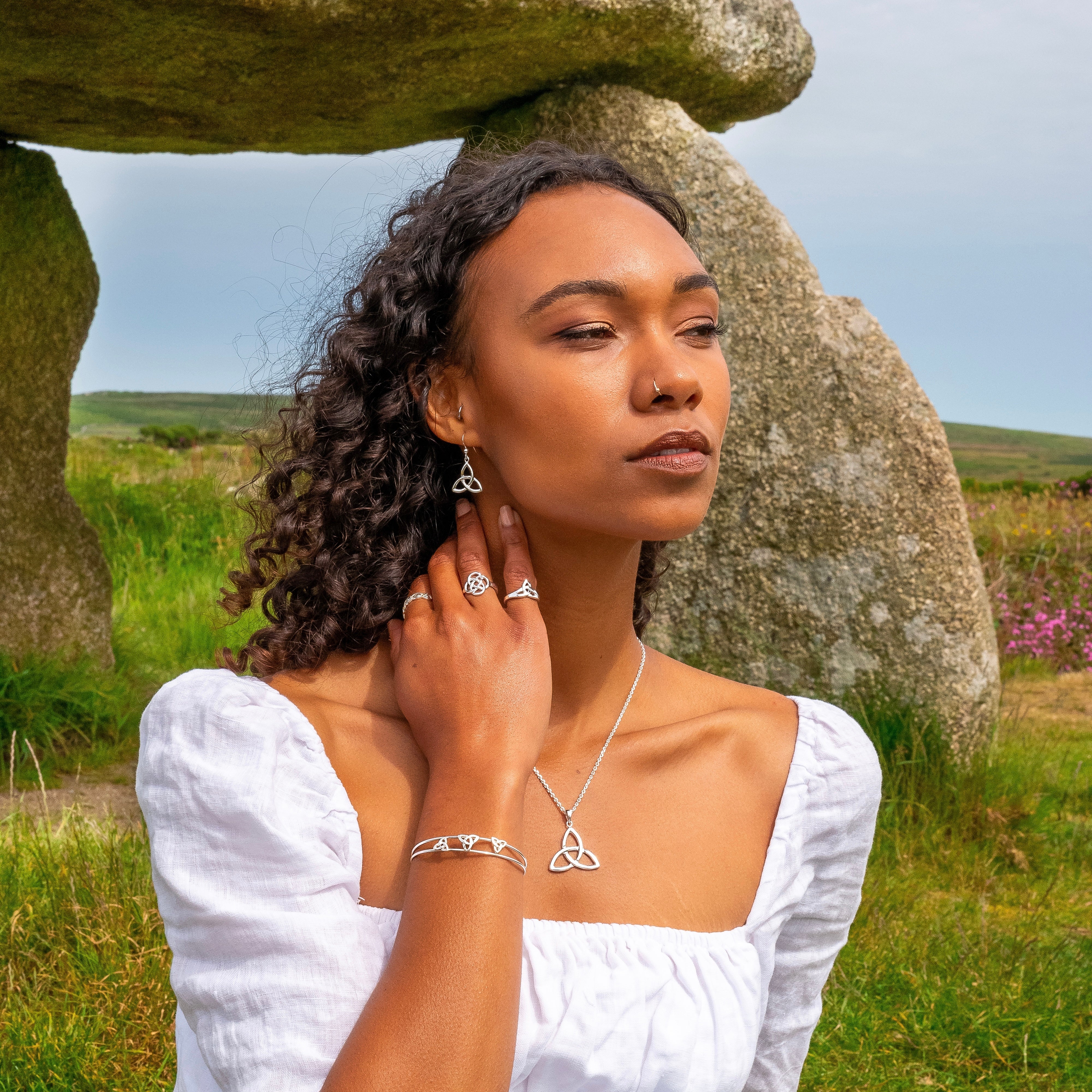 Anchor yourself in ancient wisdom with these refined sterling silver earrings, showcasing the iconic trinity knot in its purest form. This timeless Celtic symbol represents the interconnection of mind, body, and spirit—a profound reminder of life's sacred balance. Fashioned from genuine sterling silver with exceptional craftsmanship, these earrings transcend fleeting trends, offering a lasting connection to Irish heritage and spiritual meaning that resonates through generations.. Delivered in a stylish branded gift box, it is an elegant and thoughtful gift choice.