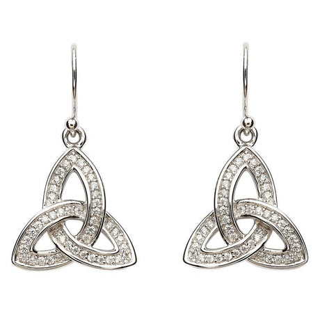 SE2081CZ Silver Stone Set Celtic Trinity Knot Earrings by Shanore