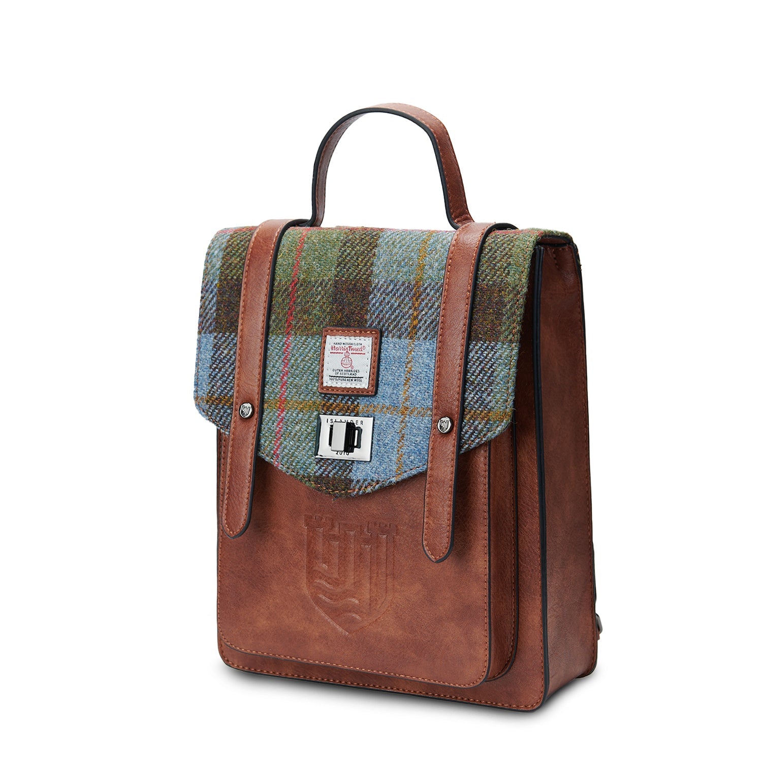 The Carloway Backpack combines timeless elegance and practicality with its microfiber leather body and genuine Harris Tweed flap. Perfectly sized to hold 13" laptops and A4 documents, it offers secure dual-buckle and twist fastening with an inner stud closure. Inside, extra pockets help keep you organized, while a reinforced handle and adjustable shoulder straps ensure comfort and durability. Upgrade your everyday essentials with this stylish, versatile backpack.