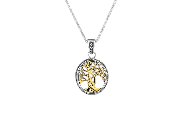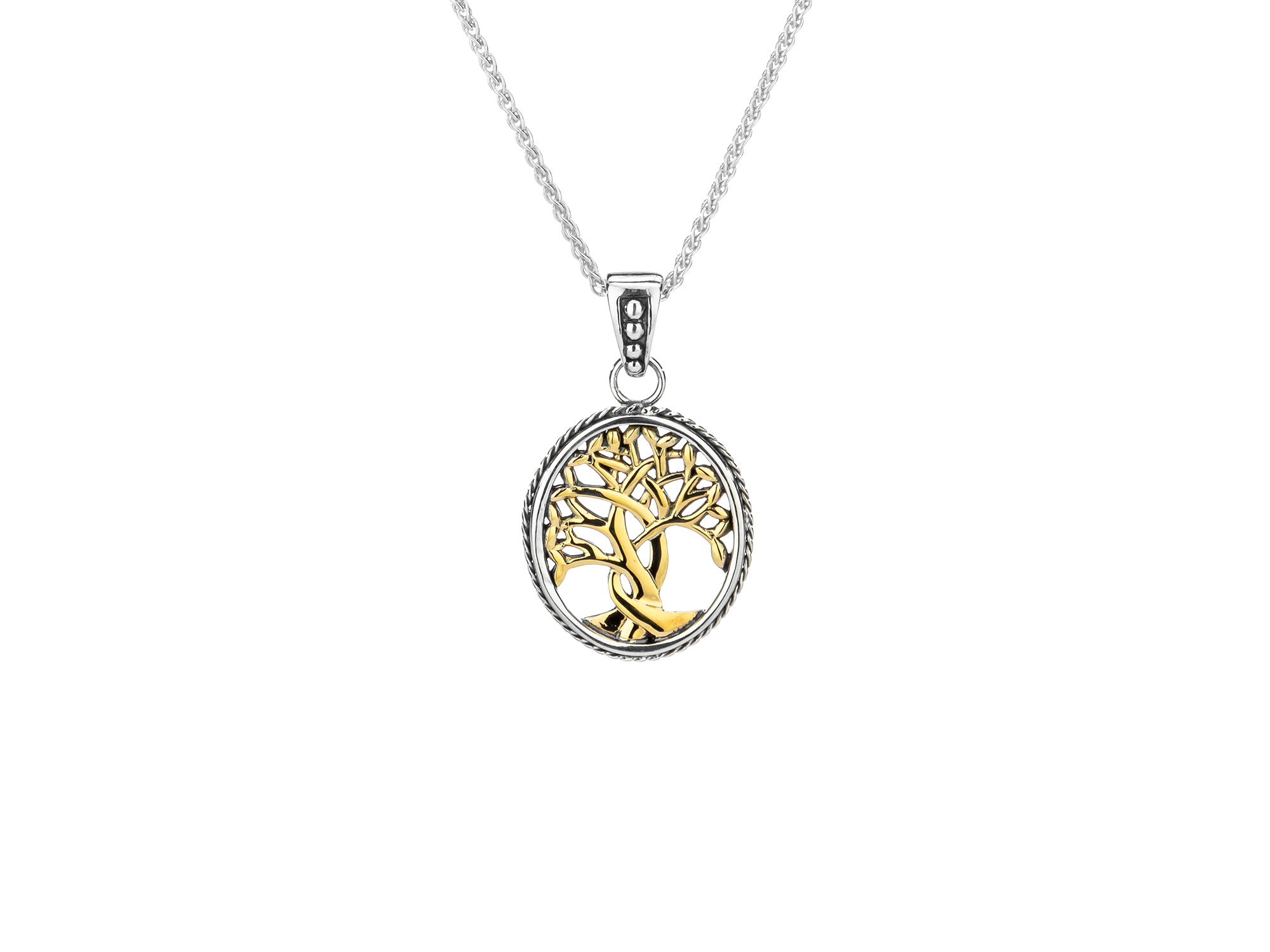 10K Yellow Gold and Sterling Silver Tree of Life Small Pendant