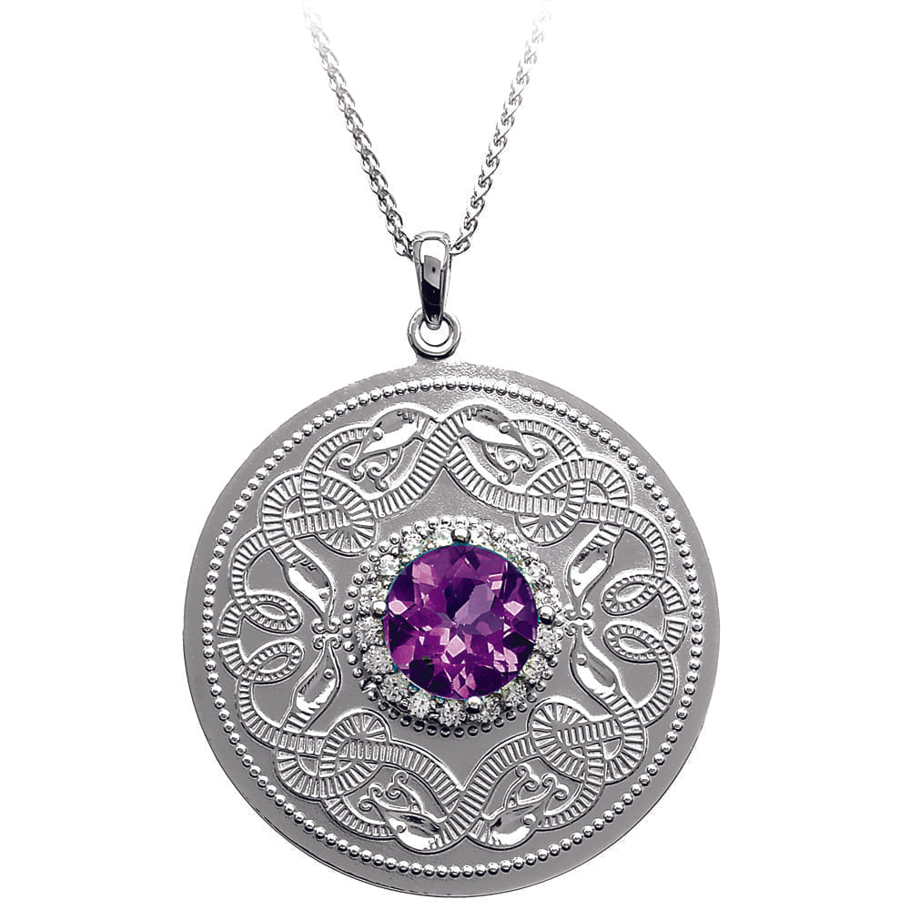 Celtic Warrior Necklace with Amethyst and Clear CZ Stones - Large