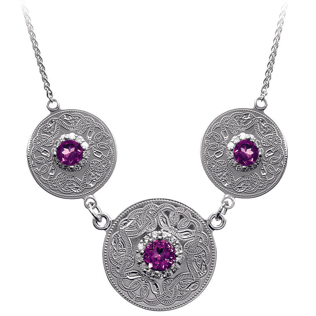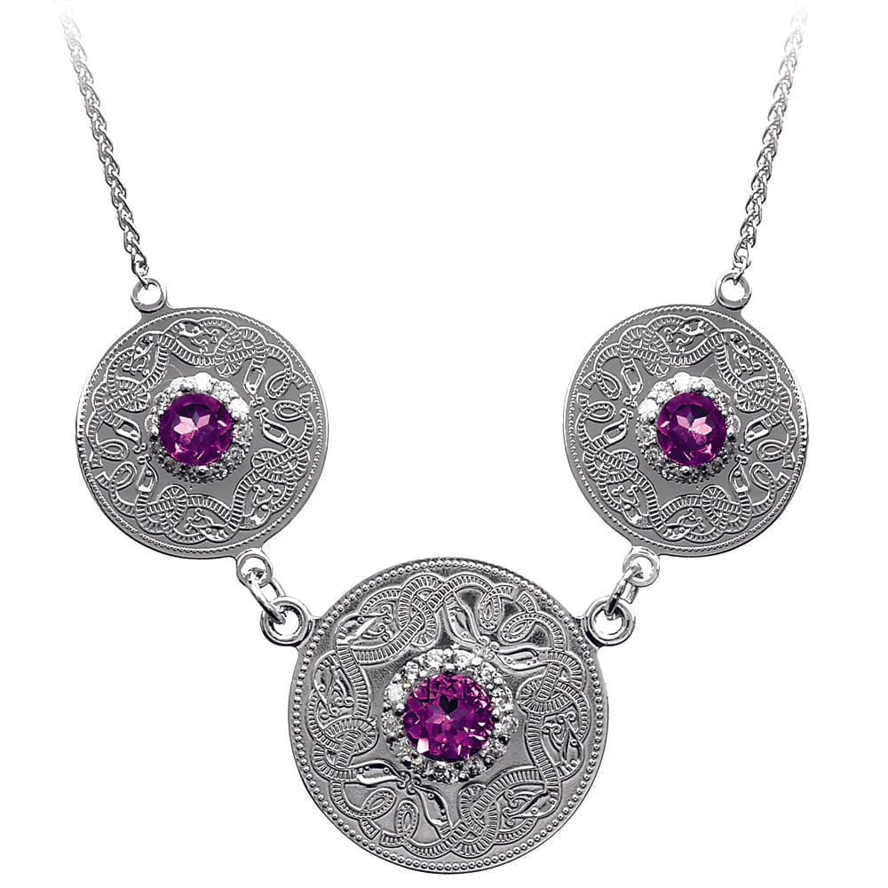 Celtic Warrior Necklace with Amethyst and CZ Stones - Triple Disc