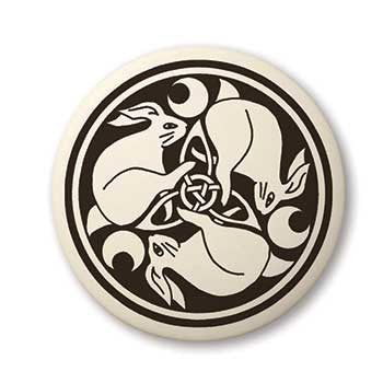The hare is considered an intermediary between mortals and deities, a messenger of the gods, but also a trickster with powers to effect transformation and control destiny. Its erratic movements foretell future events and as a lunar animal, it represents rebirth, immortality, good fortune and prosperity. The hare is the totem animal of numerous moon goddesses, most notably Eostre (the Anglo-Saxon goddess of spring) whose name is the source of the word Easter.