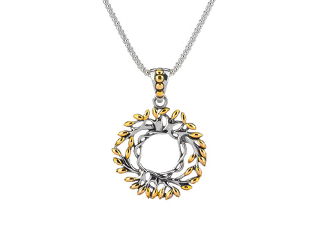 Celtic Tree of Life Round Necklace Sterling Silver & 18K Gold - Small
