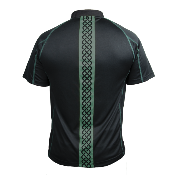 This short sleeve Rugby Jersey combines style and comfort for daily use. Featuring a sleek black base with vibrant emerald green accents and a Celtic pattern along the back, it captures Irish heritage with a contemporary athletic edge. Made from 100% polyester, it includes official Guinness branding, a rugby logo on the front, a rugby goalpost emblem on the left chest, and a smart buttoned collar for a polished finish. Perfect for fans seeking both tradition and performance.