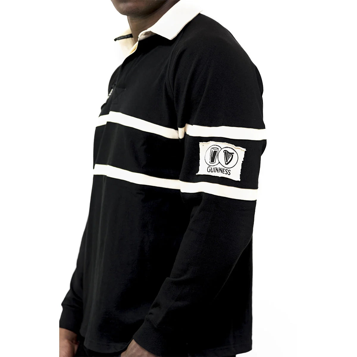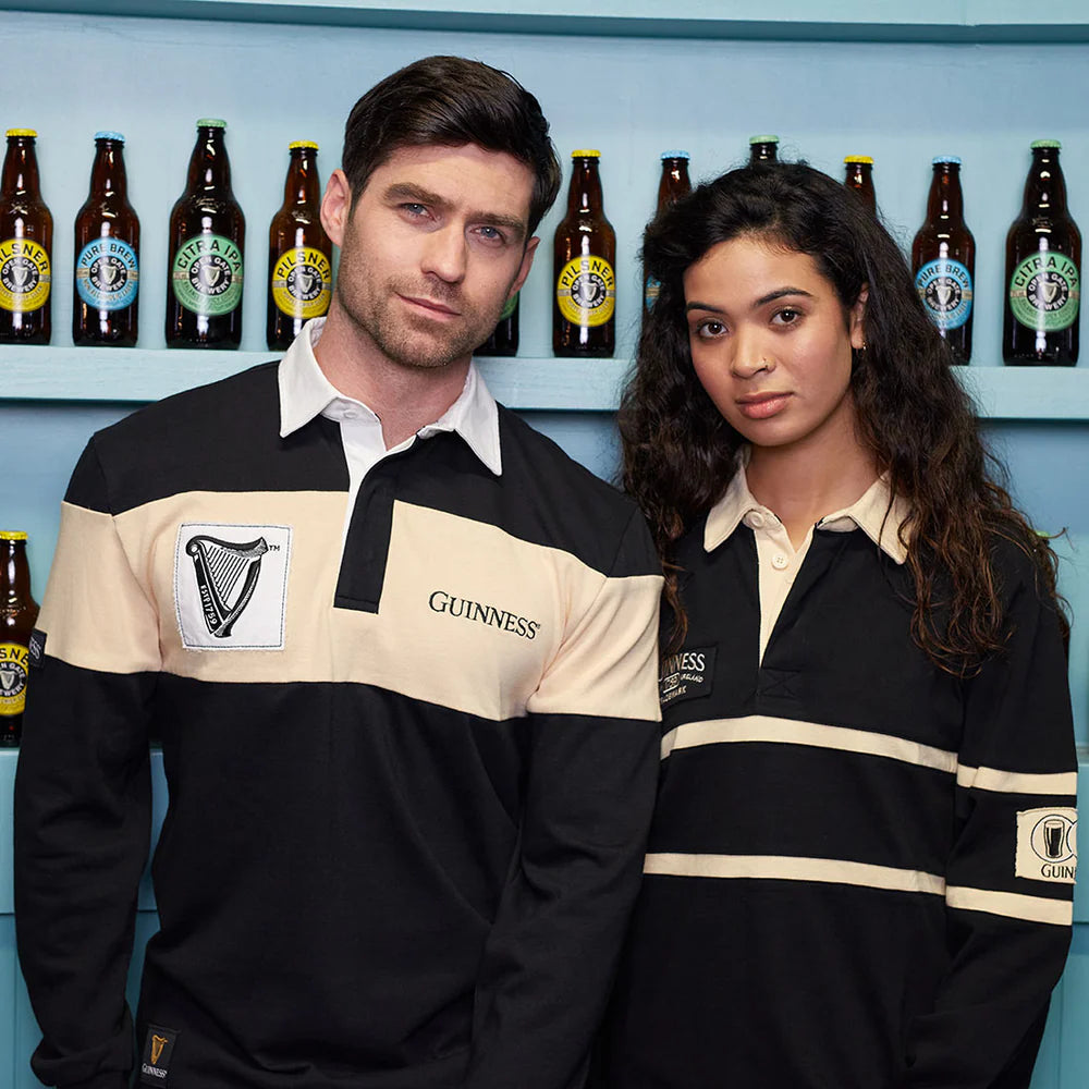 Guinness Long Sleeve Black and Cream Traditional Rugby