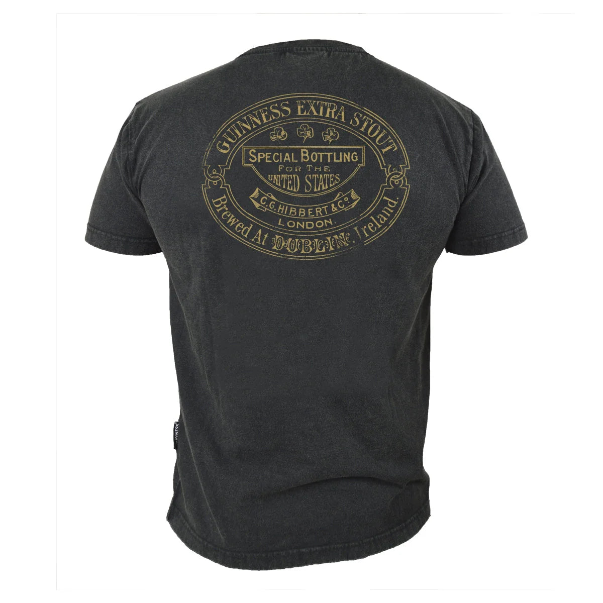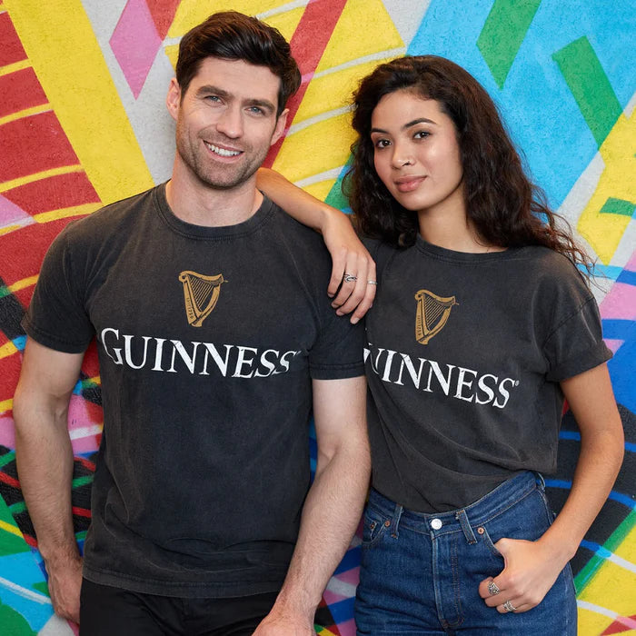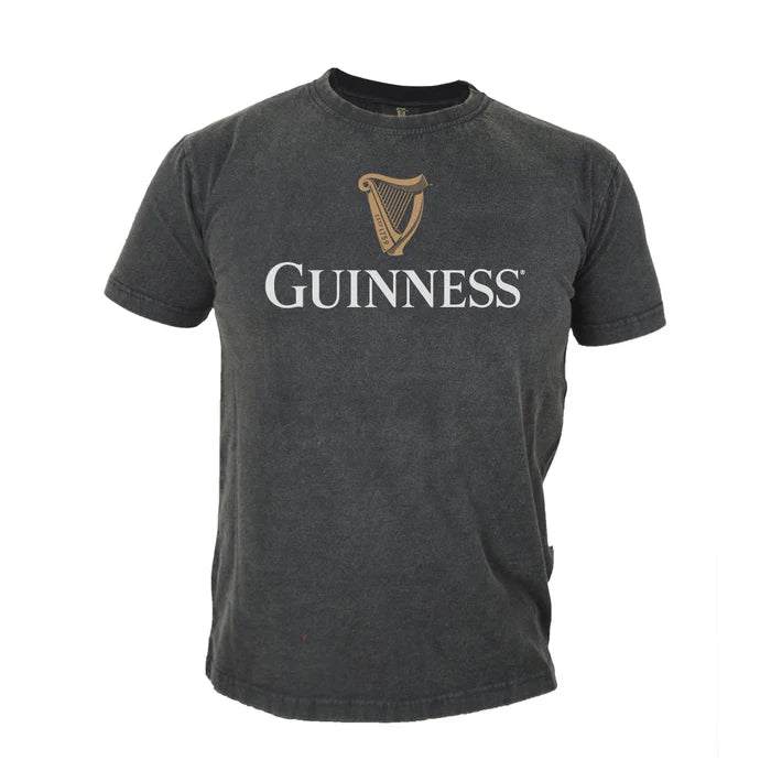 The t-shirt comes in a washed black with a distressed Guinness® Trademark label screen printed on the front and unique Guinness® Extra Stout label screen printed on the back.
