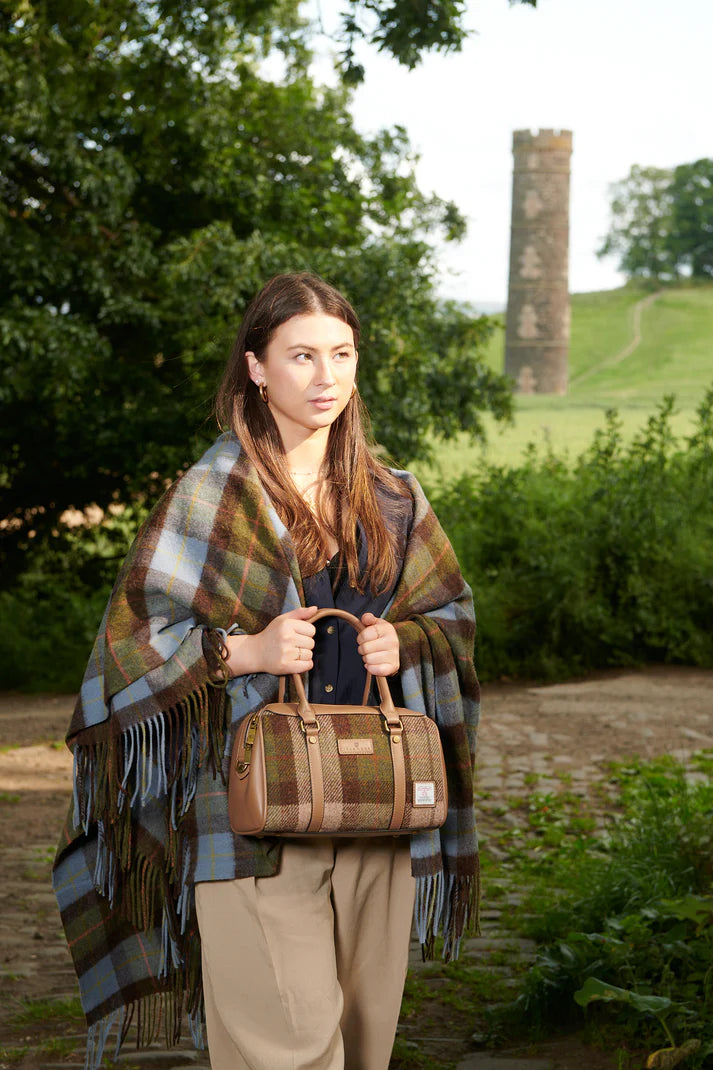 Elevate your everyday carry with this versatile duffel that seamlessly transitions from office to weekend adventures. Crafted from premium Harris Tweed paired with refined microfiber leather, it delivers sophisticated style without compromising on function. Smart organization includes an interior zippered pocket, two convenient slip pockets, and a charming floral-lined compartment. The adjustable, removable shoulder strap adapts to your needs, whether you're commuting or traveling. This is the bag that works as hard as you do.