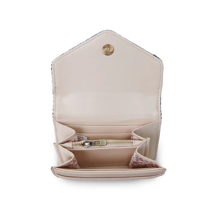 The Small Clasp Purse combines the classic charm of Harris Tweed with the sleekness of microfiber leather on its exterior. Featuring a sturdy metal popper closure, it unfolds to a microfiber leather-lined interior designed for effortless organization. Discover the perfect mix of style and practicality with The Small Clasp Purse.