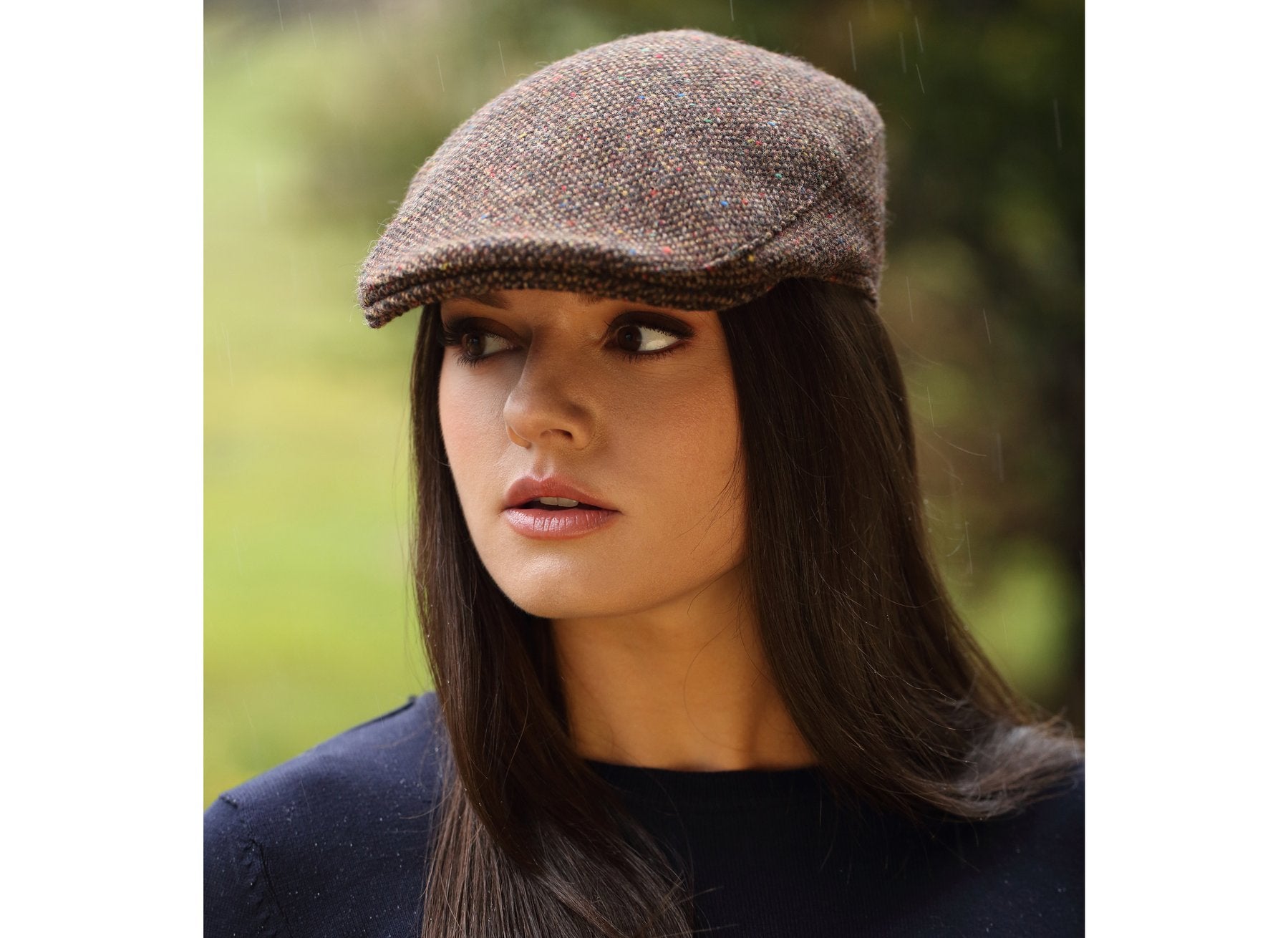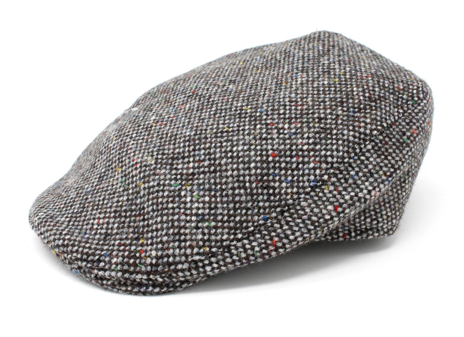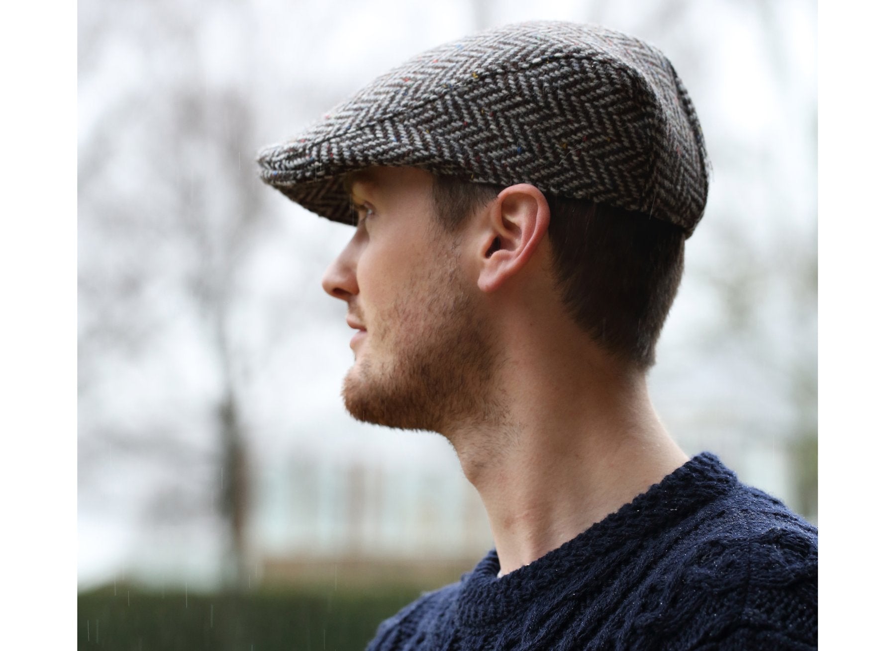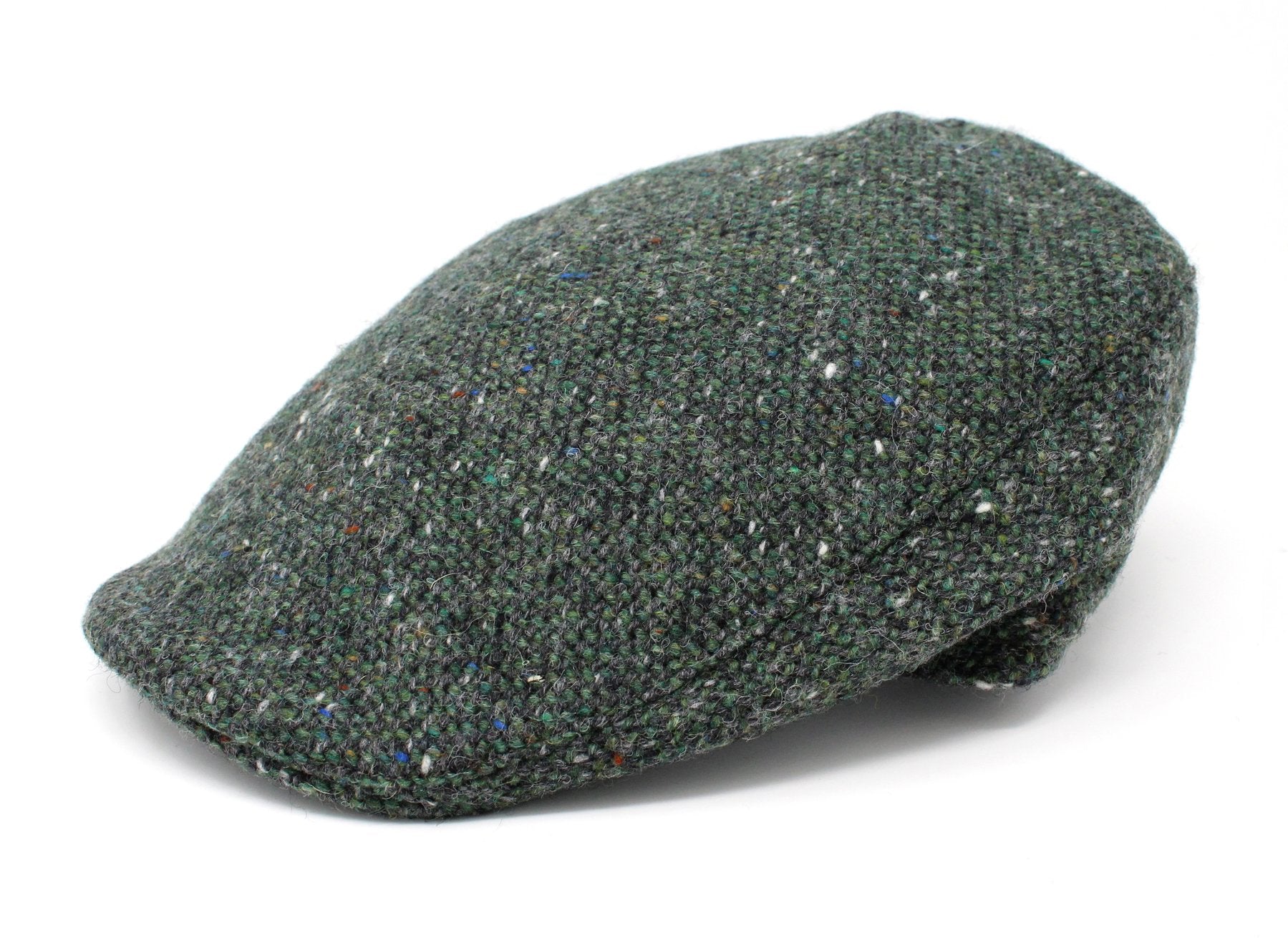 The peak is curved and sewn down at the front, giving a more tailored look. This modern solid cap is made from luxurious Irish and Scottish Harris tweeds which are reflective of the colors naturally found in the Donegal countryside.