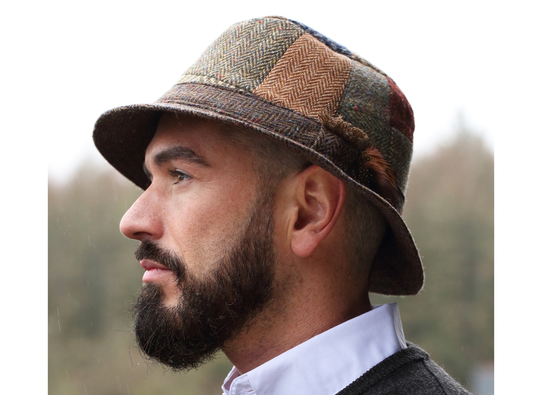 Each Patchwork Tweed Irish Walking Hat is unique as they are made up of pieces of tweed that would otherwise be discarded. Multicolored tweed patches are sewn together using the age-old tradition of quilting, Each patchwork hat is unique and will vary from the photographs. Yours will be a one of a kind.