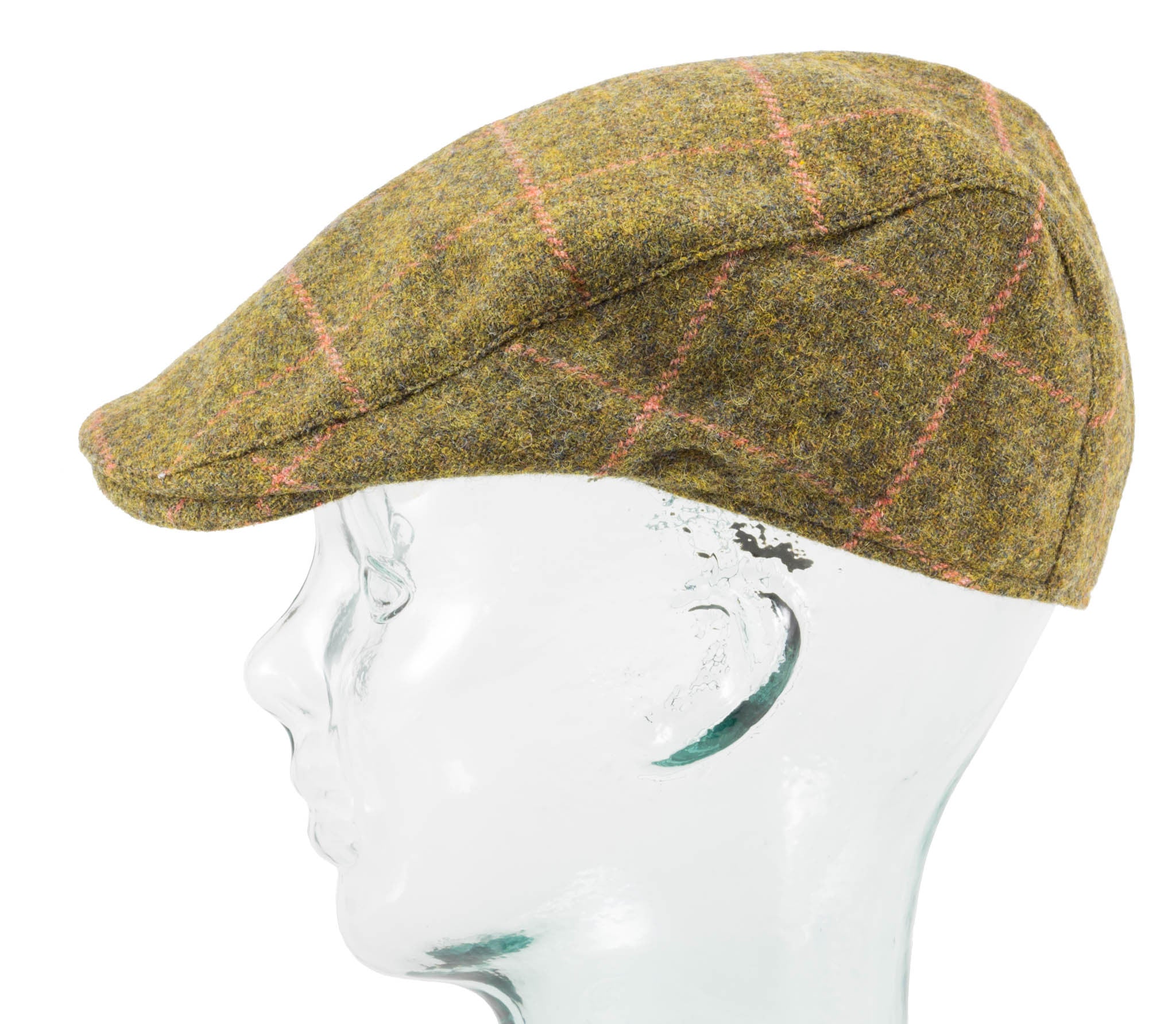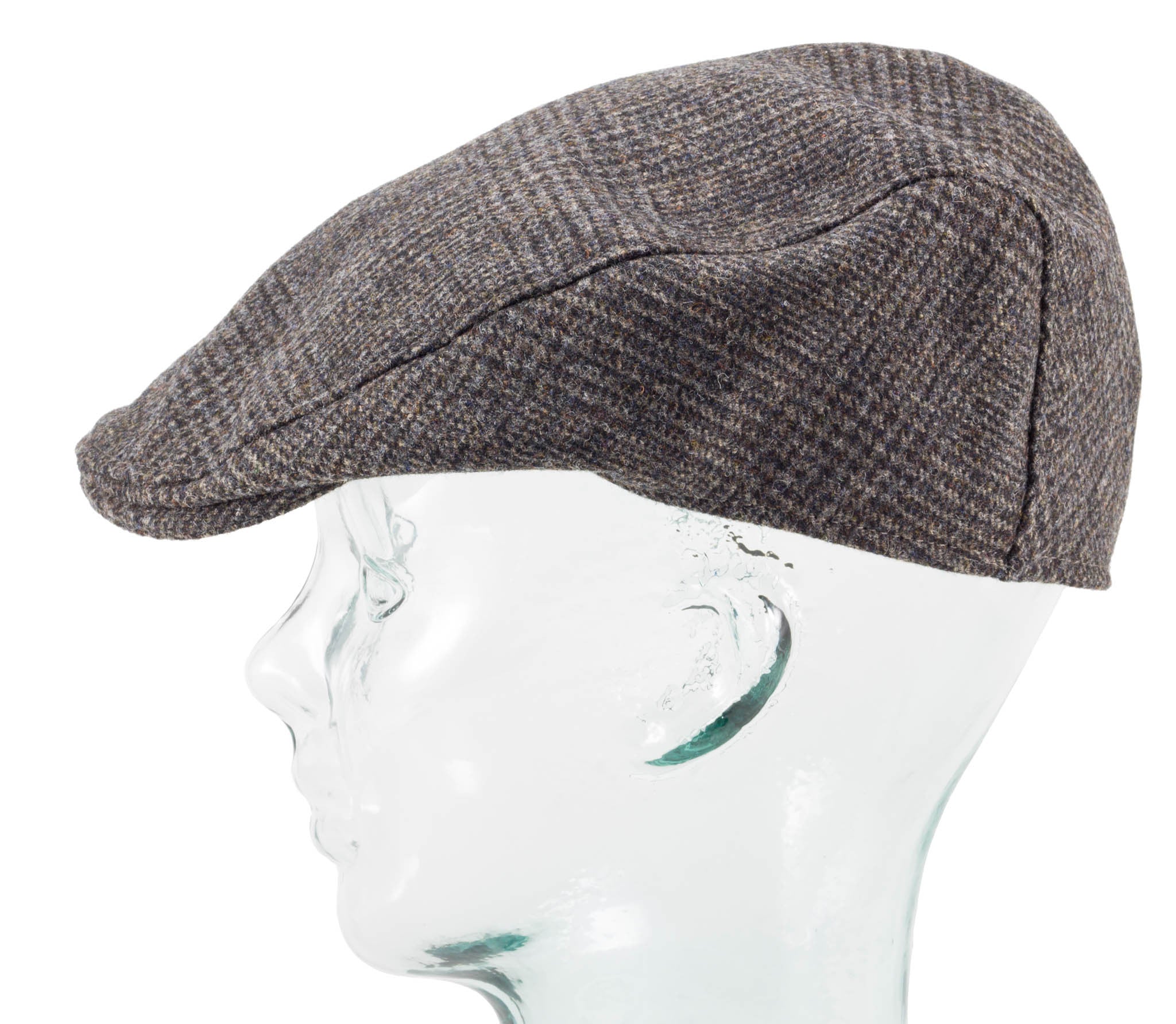 Donegal Touring Style Caps in assortment of tweeds, colors and patterns made exclusively for Real Irish by Hanna Hats.