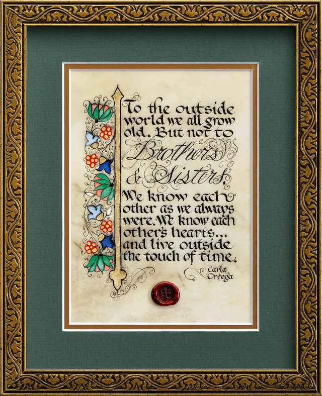 To the outside world we grow old, but not to Brothers & Sisters. We know each other as we always were We know each others hearts...and live outside the realm of time.