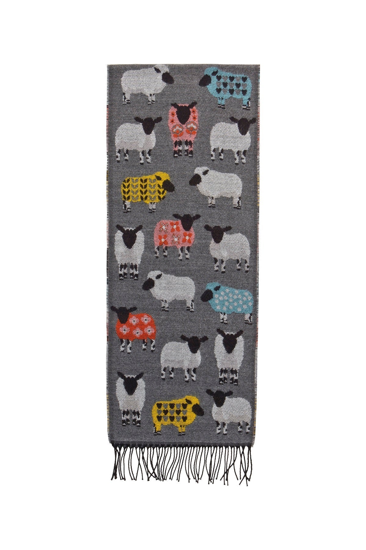 Scarf with Sheep Motif - Grey - Sheep Design Scarf is backordered and will ship as soon as it is back in stock.