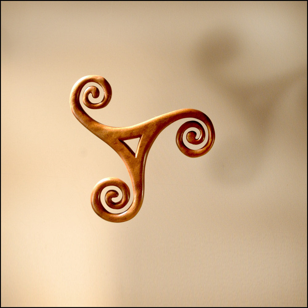 The Triskele or Triskelion is a symbol that consists of three interlocked spirals. It is one of the oldest Irish Celtic symbols in existence, and is best known to represent the three worlds; the celestial, physical, and spiritual.