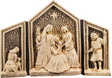 The basic nativity set should consist of at least five pieces. The manger where baby Jesus rests, is placed front and center in the stable. This is because Jesus is the most significant piece in any Nativity set. Mary and Joseph are also prominent. Mary is often placed right beside the manger, fondly looking over her son, while Joseph is usually placed on the opposite side of the manger. These five pieces, stable, manger, Christ child, Mary and Joseph, make a complete basic set. Other pieces may be added including, the star of Bethlehem, the Angel Gabriel, the shepherds, the Wise-men, and various barn animals.