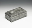 The design is that of this Mullingar Pewter Claddagh Jewelry Box taken from the famous love symbol designed in the town of Claddagh, Co. Galway by Richard Joyce back in the year 1689. The design is often used for wedding rings as it is based on the ring that Richard made for his bride to be. The symbolism's are "hands for friendship", "heart for love" and "crown for loyalty".
