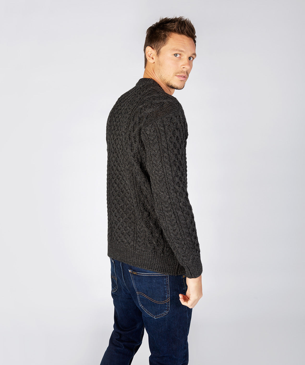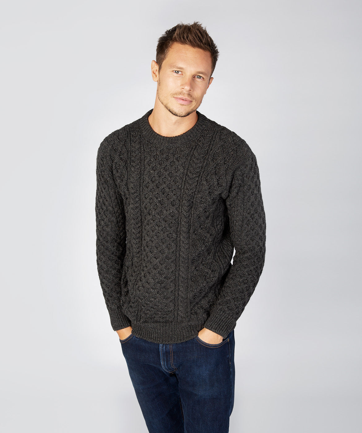 Men's Crewneck Aran Sweater - Graphite - IrelandsEye Knitwear / Small is backordered and will ship as soon as it is back in stock.