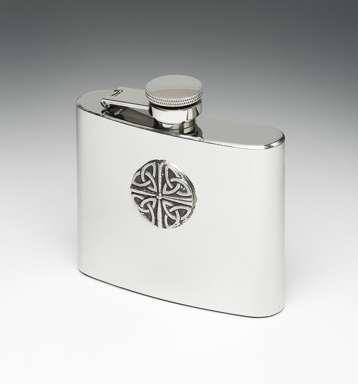 Whiskey Hip Flask with Multi Trinity Knot Design by Mullingar Pewter.