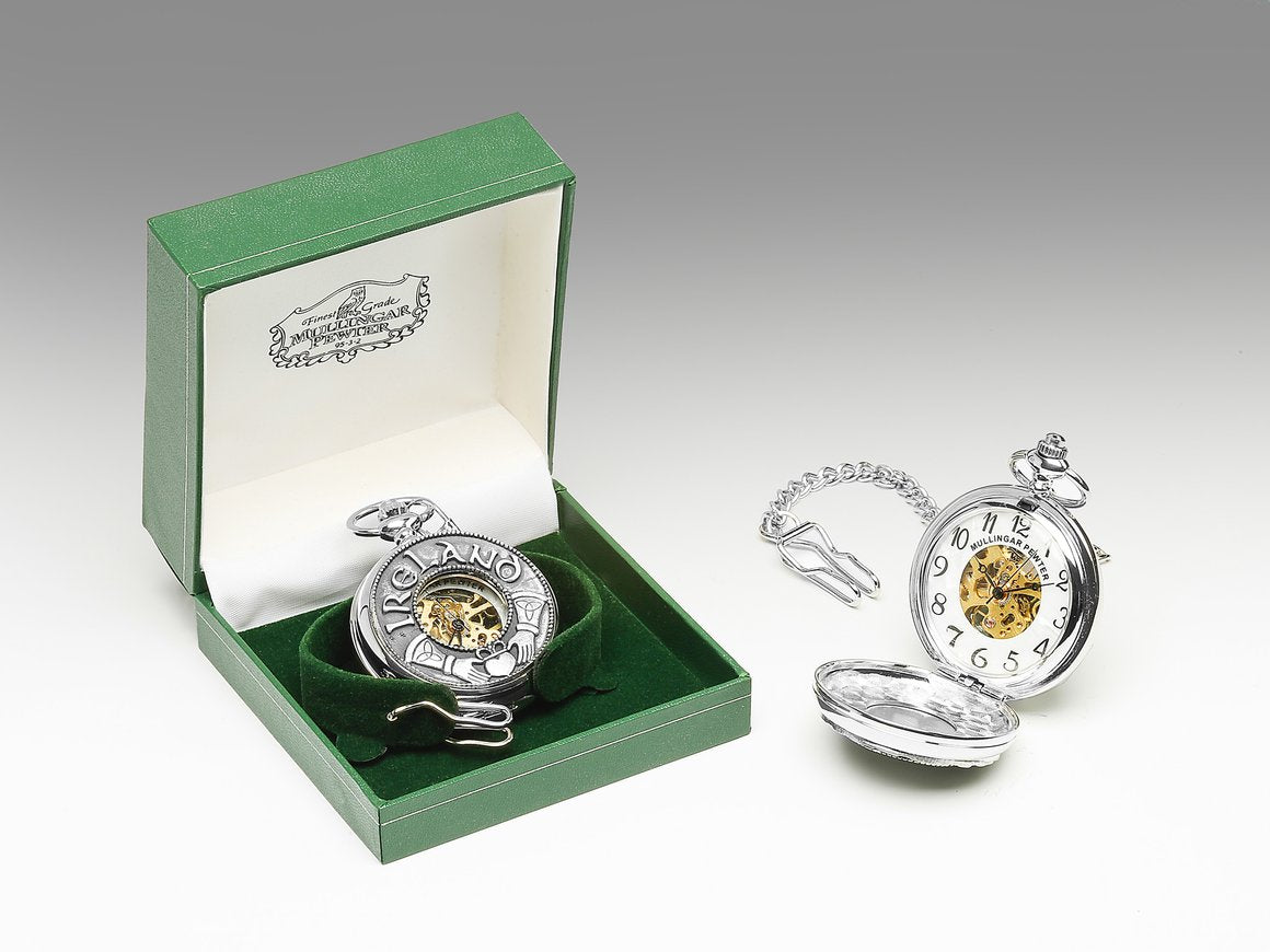 Mechanical Pocket Watch with Claddagh/Ireland Design by Mullingar Pewter