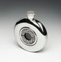 Round Whiskey Hip Flask with Glass Center and Celtic Birds Design