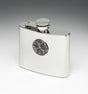 Hip Flask Embossed with a Pewter Disc with a Shamrock and Trinity Knot Design.