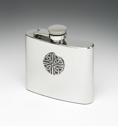 Whiskey Hip Flask with Multi Trinity Knot Design by Mullingar Pewter