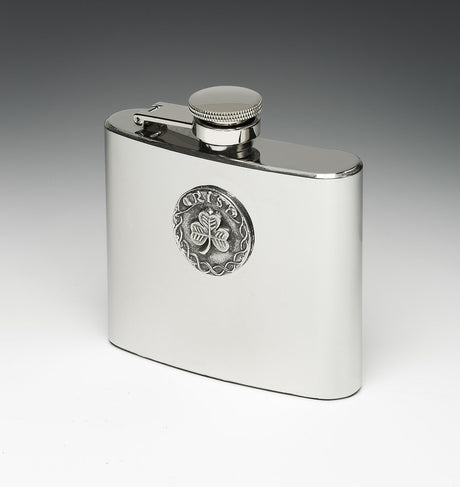 Whiskey Hip Flask with Shamrock/Irish Design by Mullingar Pewter