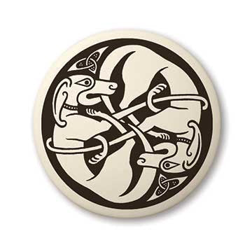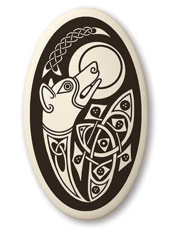 To the Celtic peoples, dogs have often symbolized the strong bond of companionship and loyalty between human and animal. The Celtic goddess to protect travelers, Nehalennia, is often depicted with dogs at her side. Dogs figured prominently in Celtic artwork, especially within the Books of Kells, Durrow, and Lindisfarne. Fiercely protective of their human families, the barking of a faithful dog can be a first alert to danger or concern.