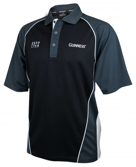 Guinness Men's Black and Grey Paneled Performance Golf Shirt