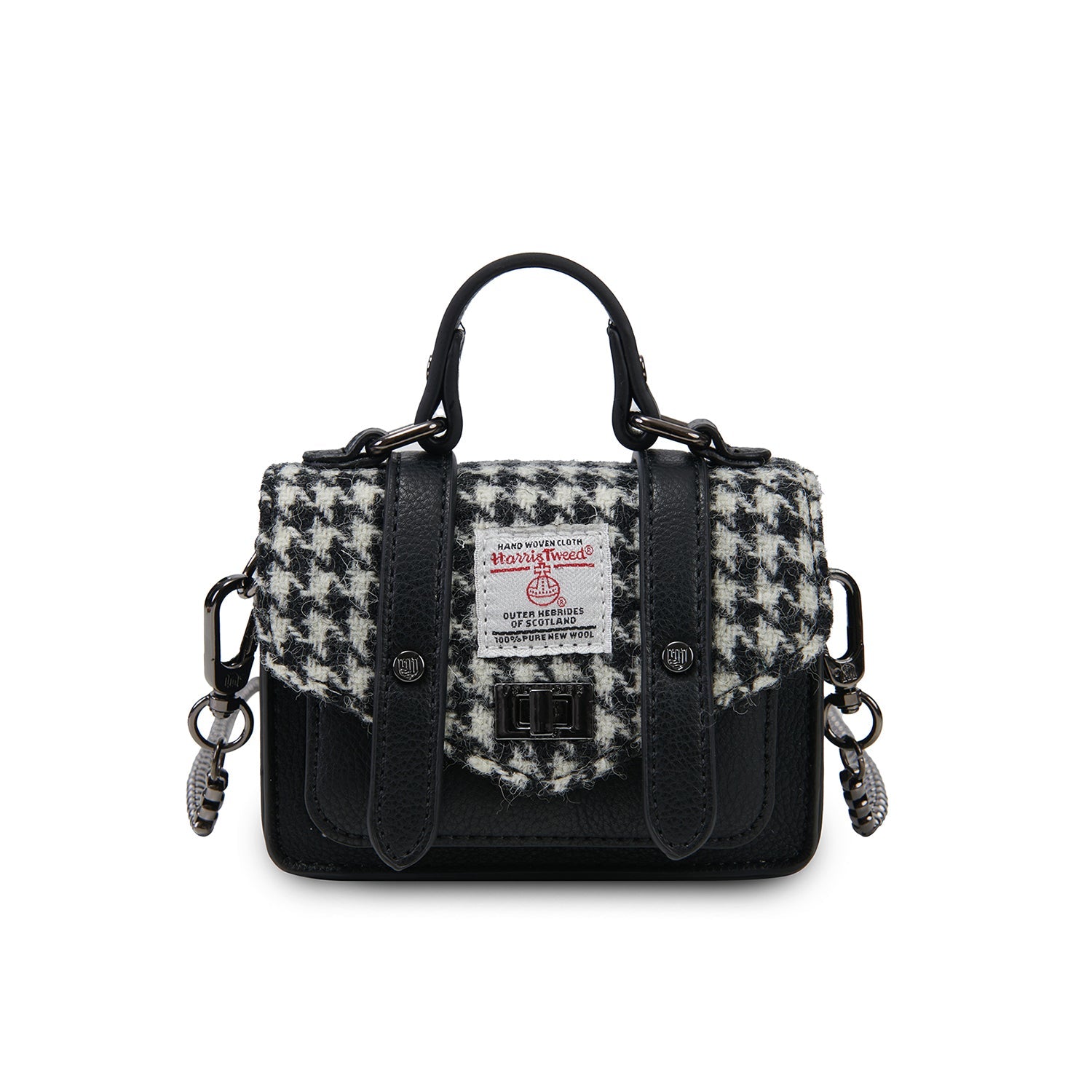 Meet The Wee Satchel—proof that great style doesn't require great size. Crafted from premium microfiber leather and authentic Harris Tweed, this petite powerhouse delivers sophisticated charm without the bulk. Perfect for those who refuse to compromise on elegance, it features dual compartments for smart organization and a versatile shoulder strap combining chain and microfiber leather construction. Adjustable and removable, the strap adapts to your needs while the refined materials ensure this compact companion becomes an instant favorite in your everyday rotation.