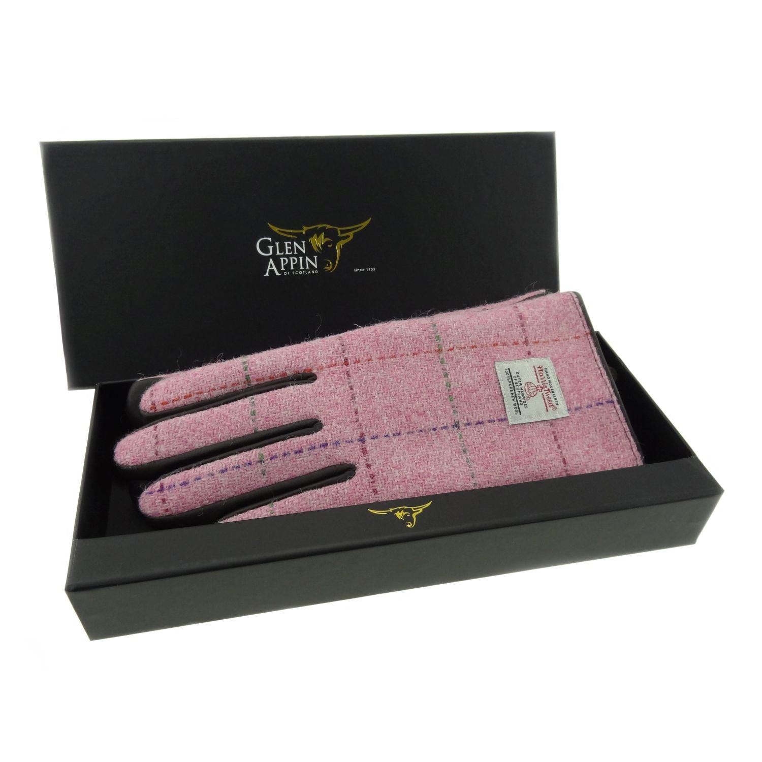 Womens Harris Tweed and Brown Leather Gloves - Gift Boxed