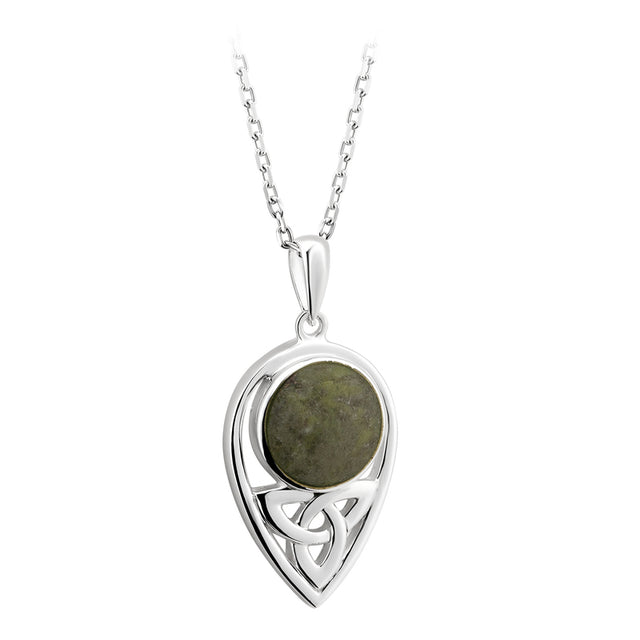 Silver Connemara Marble Trinity Knot Pendant Necklace