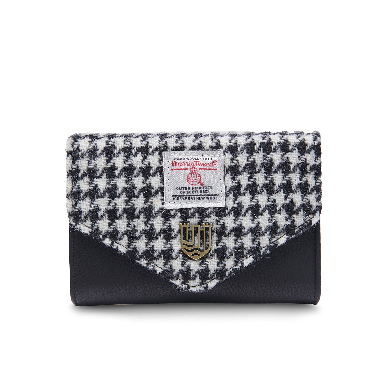 The Small Clasp Purse combines the classic charm of Harris Tweed with the sleekness of microfiber leather on its exterior. Featuring a sturdy metal popper closure, it unfolds to a microfiber leather-lined interior designed for effortless organization. Discover the perfect mix of style and practicality with The Small Clasp Purse.