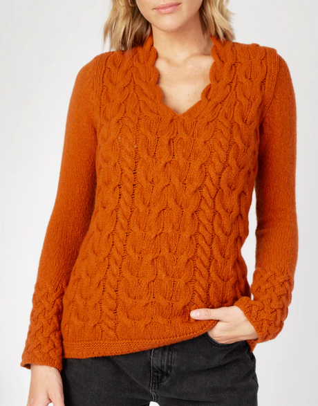 Women's Wool & Cashmere Horseshoe Cable V-Neck Sweater