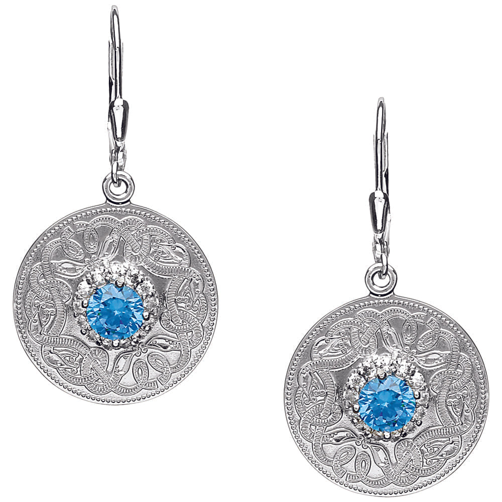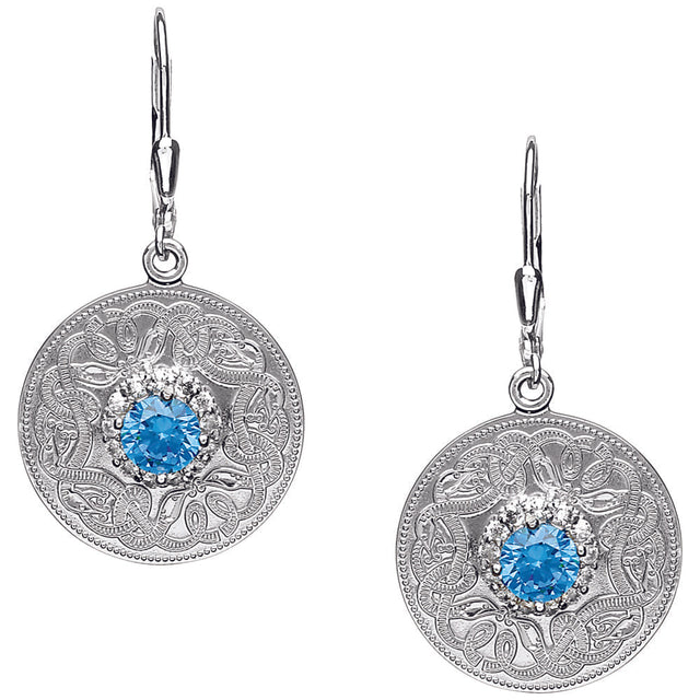 Celtic Warrior Style Earrings with Swiss Blue and Clear CZ Stones