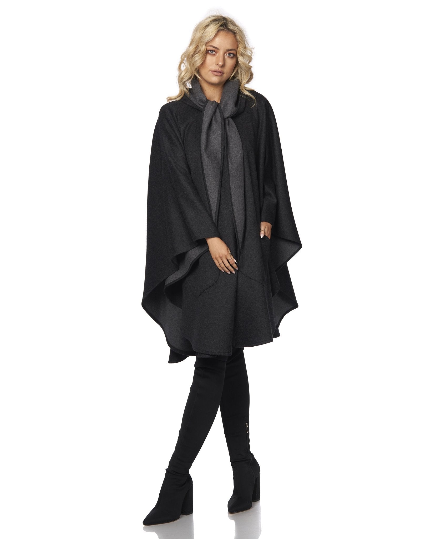 Charcoal and Grey Knee Length Cape with Pockets