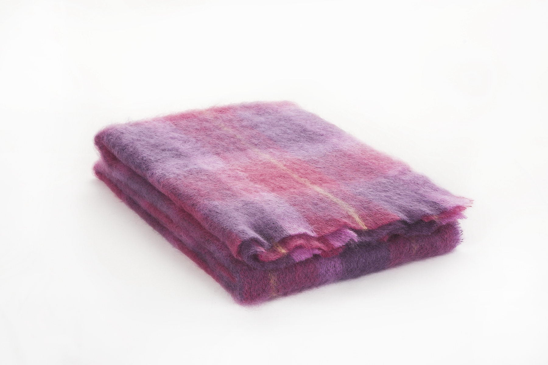 This large plaid brushed mohair Irish throw blanket showcases the rich colors of mohair yarns, creating a timeless and sophisticated accessory. Its exceptionally soft texture brings both warmth and a touch of luxury to any living or bedroom area.