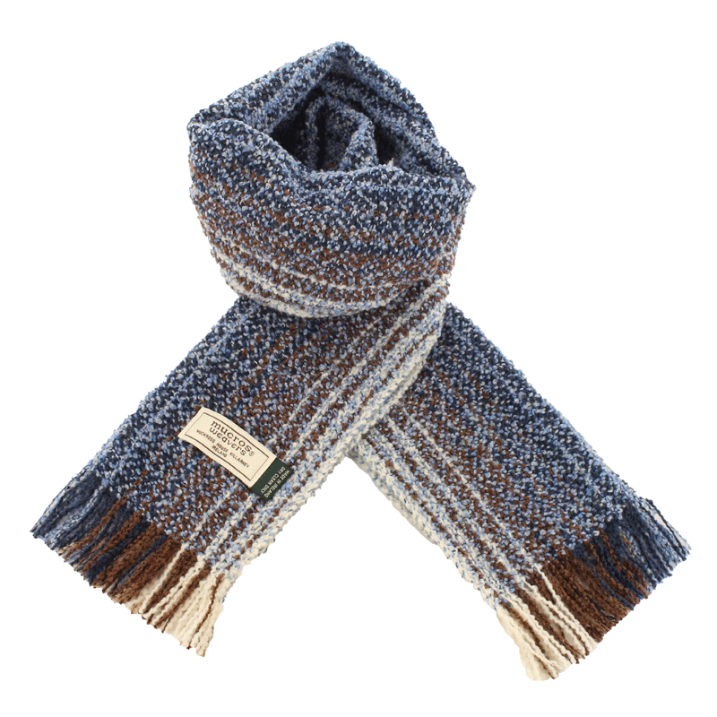 The Mucros Weavers Skellig scarf combines exquisite extra fine merino wool and cashmere for an incredibly soft feel. Its rich colors and textures draw inspiration from the stunning natural landscapes of the Skellig Islands off Ireland’s southwest coast, making it a stylish and cozy tribute to this breathtaking region.